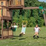 The standout feature is the crow’s nest with a telescope that always sparks adventures. But not to be outdone, just below is a set of monkey bars, a rock wall, a wave slide, a snack stand, a picnic table, swings, and more. With so many features, it rises above what you’d expect from a swing set — that’s why we named it Skyfort!